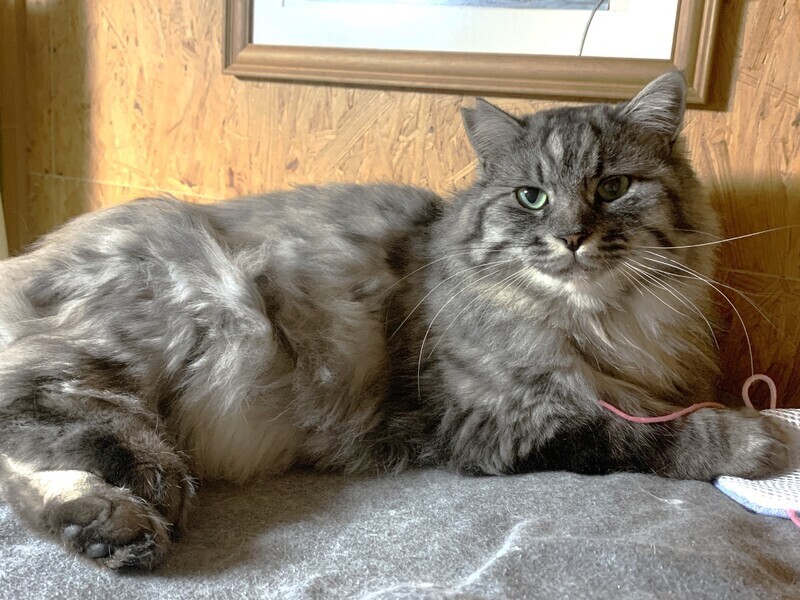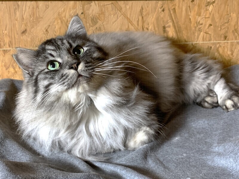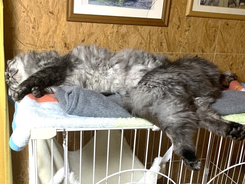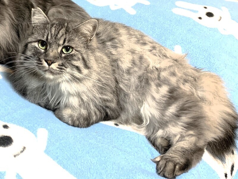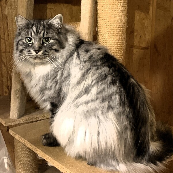 | 特徴(性格など) | 【仮名】シロファ 【生年月日】推定2022年春生まれ 【種類】MIX 【毛色】長毛 ブラックスモーク 【性別】オス 【去勢】済 【ワクチン】済 【駆虫】済 【猫エイズ・猫白血病】陰性 【健康状態】良好です。 生粋の野良出身でかなり臆病で警戒心ありますが、最近では抱っこもできるようになり、おもちゃで遊ぶの大好きで大きな体で機敏に動いて遊びます。預かり先の先住猫とは上手に距離を保ちつつ仲良く過ごしています特に女子猫にはとっても優しいふわふわもふもふ紳士猫です。撫でたりブラッシングも大好きでゴロゴロしてくれますよ!新しい環境や人に慣れるのに時間がかかるビビリ猫ですので、根気よくシロファのペースに合わせて向き合っていただける方を希望します。 【兄妹猫】クロファ♀ |