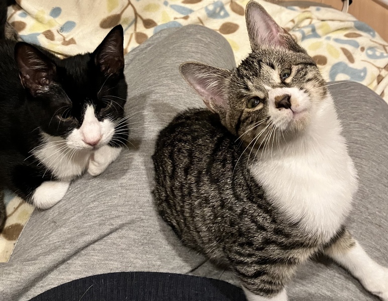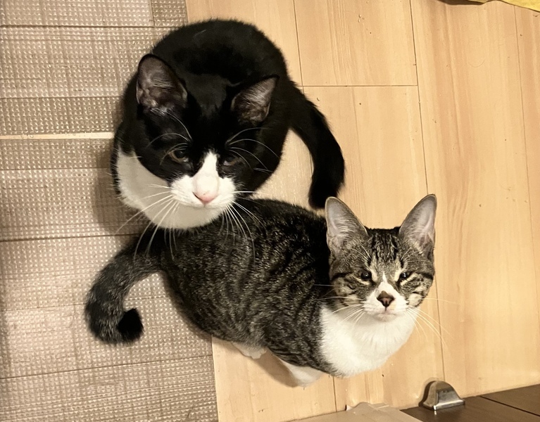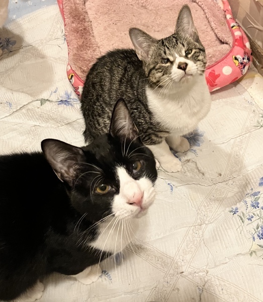 | 特徴(性格など) | キジ白、白黒の兄弟です。 ジューたん、ドラたんです!(仮名ですので、里親様が可愛いお名前を付けてあげてください) 2匹そろって長い先の曲がった尻尾です。 ものすごく甘えん坊で、お膝と抱っこの要求が半端ないです。 目が合えば…グルグルゴロゴロ、すっ飛んできます。 人が大好きな子に育ちました! じゅーもドラもかなりしつこいので、それに耐えてくださる里親様を希望しております。 性格の良い、甘えん坊でベタベタな猫ライフになると思います。 保護当初とても小さく、まだ乳飲み子でした。生後2週くらいでした。 風邪っぽい症状があり、目がクシャッとしていて 失明しないか心配しながら、ミルクあげ、目の治療とお世話していました。キジ白ジューたんは少し目が開き辛いですが、ちゃんと見えていて、細いお目目がトレードマーク。 一生懸命こっちを見つめてくれて可愛らしいです。 先日、お目目が開くように切開の手術をしました。 あんな小さな弱った状態から頑張って元気になってくれました。本当に偉い子たちです。 今現在、元気いっぱいでよく食べ、よく遊び、よく甘えて過ごしております。 |