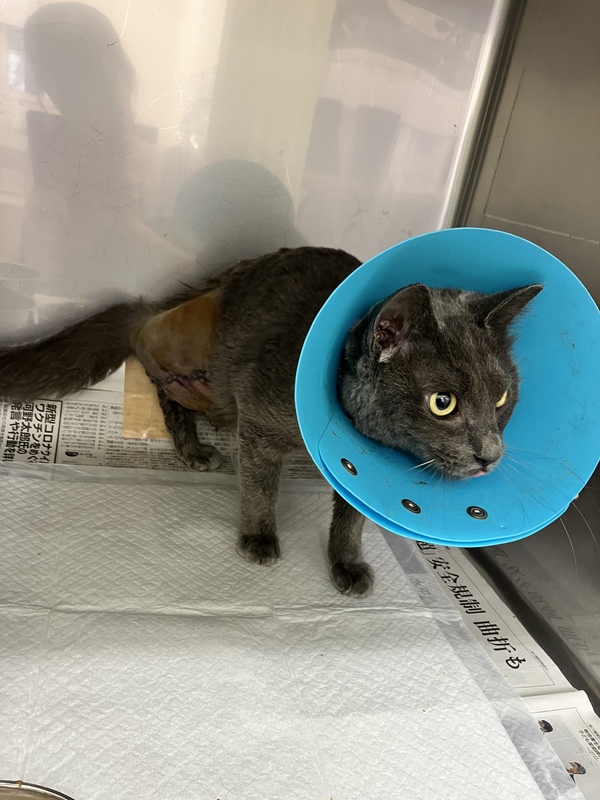 | 特徴(性格など) | グレー色の男の子 カツオちゃんです。 まん丸お目目にまん丸お顔。 長くて真っ直ぐお尻尾です。 甘えん坊であとを付いて回り、寝る時も一緒。 スリゴロ人大好きで穏やかな可愛い子です。 左脚を断脚し、3本脚ですが何の不自由なく元気いっぱいに過ごしています。 小さい時から色んな事を乗り越えてよく頑張ってくれました。 今現在、元気に毎日過ごしています。 全ての医療行為は済んでおります。 |