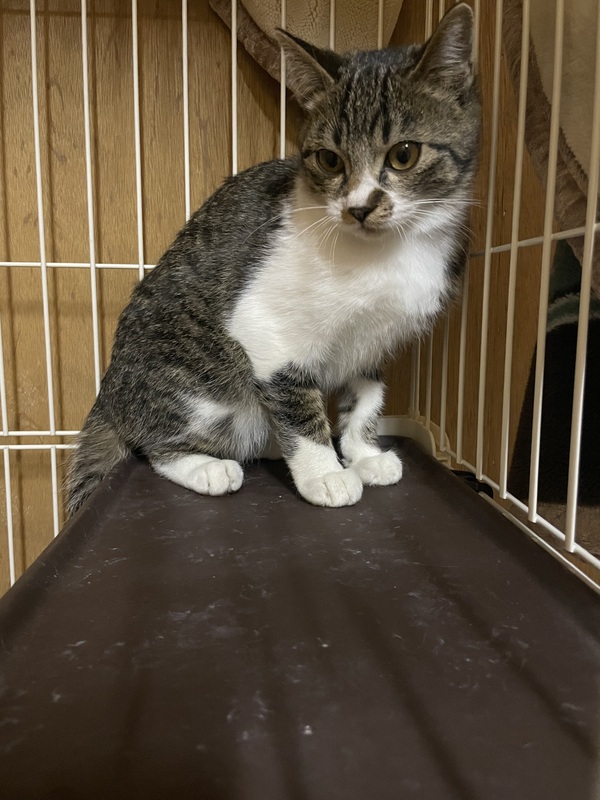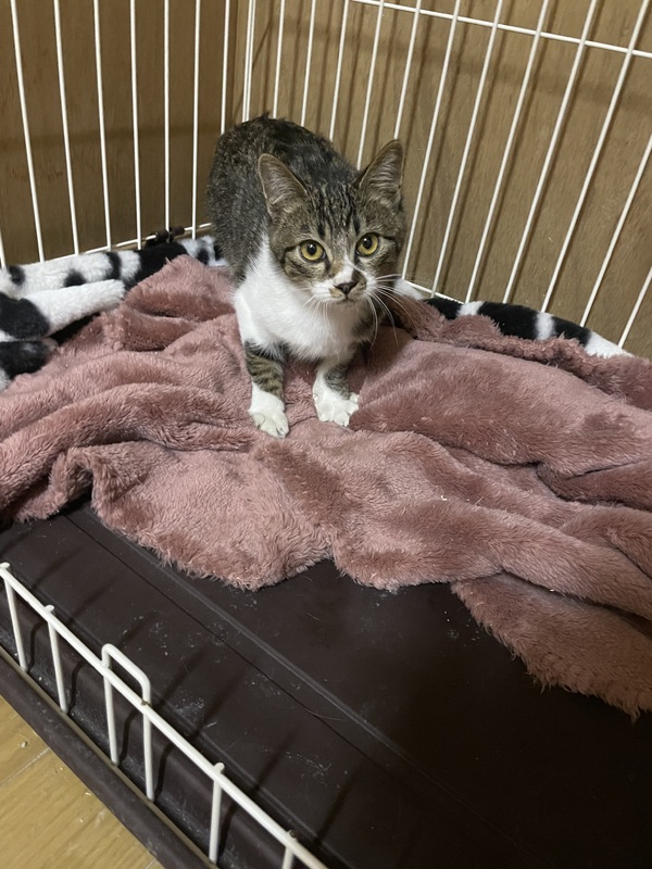 | 特徴(性格など) | キジ白の男の子。 まだ人慣れ訓練中ですが、こちらのことを気にしている様子はありなので一緒に生活すれば慣れていくとおもいます。 まだまだびびりちゃんです。 |