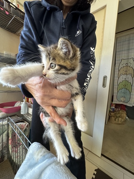 | 特徴(性格など) | サビトラ、女の子、活発で元気な子です キジトラ、男の子、おとなしくてのんびりした子です どちらもとても人に慣れており、近づいても威嚇などはしません |
