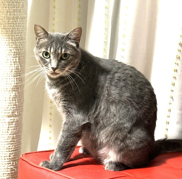| 特徴(性格など) | 仮名: ねねちゃん(メス 毛色: グレーの縞模様 性格: 臆病なところがあり、たまに怖くてシャーとすることもありますが、言うだけで、お尻トントンも好きだし、ブラッシングも好き、撫でられるのも好きです。 攻撃性はないので抱っこさせてくれ、爪切りも出来ます。 甘えモードに入ると、撫でてほしくてスリスリしてくるところもあります。 他猫とは問題なく過ごせていて、仲の良い子とは一緒に遊んだり、寝たりしますので、優しい先住猫ちゃんがいるお家でも大丈夫かと思います。 今は、ドライフード中心に食べていますが、ちゅーるは大好きです。どうしても怖がりの面はありますので、ゆっくりとねねちゃんのペースに合わせてくださる方を希望ですので、猫飼い初心者の方よりも、経験者のほうが向いているかと思います。 検便済 駆虫済 3種混合ワクチン済 避妊手術済 猫エイズ・白血病ウィルス検査はともに陰性です |