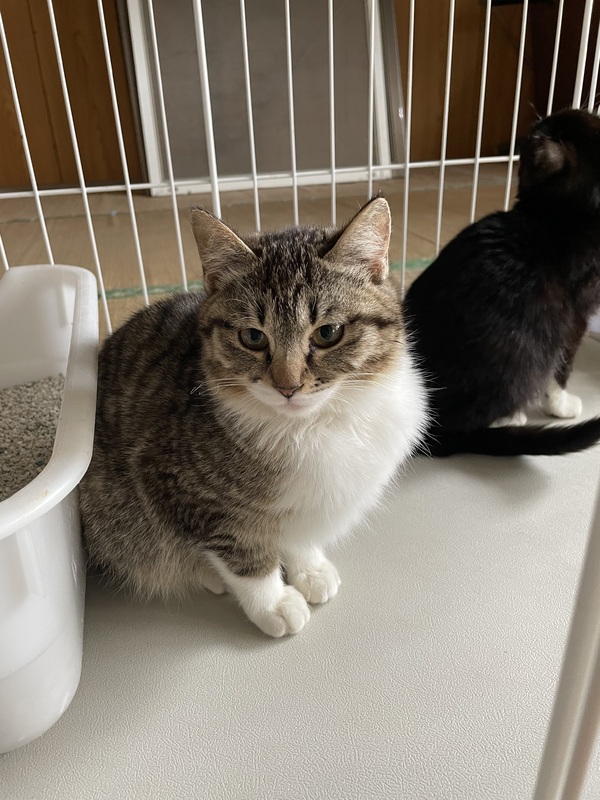 | 特徴(性格など) | キジ白で胸や足先が白色でとてもかわいい子です。 野良さんとは思えないほど人馴れしていて大人しくてとてもいい子です。 |