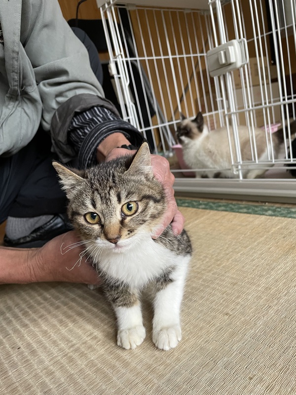 | 里親募集する理由 | 餌やりをしている猫友が近所の方から子猫がいると聞き3匹の子猫を保護しました。 親猫はあまり姿を見せなく寒い中よく生きていたと思います。 猫友の家にも沢山の猫がいてこれ以上は厳しいので里親さんを探して欲しいと依頼されました。 家族として大切にしてくれる方の応募お待ちしています。 |