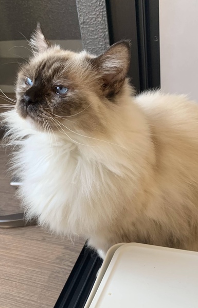 | 特徴(性格など) | ポイントミテッド 穏やかな性格で人が好きで、立ち上がるとついてきてくれたり、帰宅時にお迎えに来てくれるような猫です |