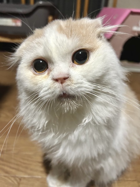 | 特徴(性格など) | スコティッシュフォールドのツムくん 少しだけ怖がりな所がありますが、とっても甘えん坊です! 人の方に寄ってきて、撫でて〜と頭をグイッとします 抱っこもできます ゴロゴロが止まりません ただスコティッシュによくあるのですが、身体のつくりが弱いです 左後肢の骨のつくりがおかしくて足を上げている状態な事が多い(骨瘤)です 肉球と爪の位置関係もおかしく、肉球に刺さる可能性があるので月1くらいの爪切りと、爪もむけにくいので切った時に一緒に剥いてあげてください こんな感じでケアをしながらツムくんを家族に迎え入れてくださる方をお待ちしています 爪切りとかも1人で出来るくらいとても良い子です( ; ; ) その他の健康状態は良好です |