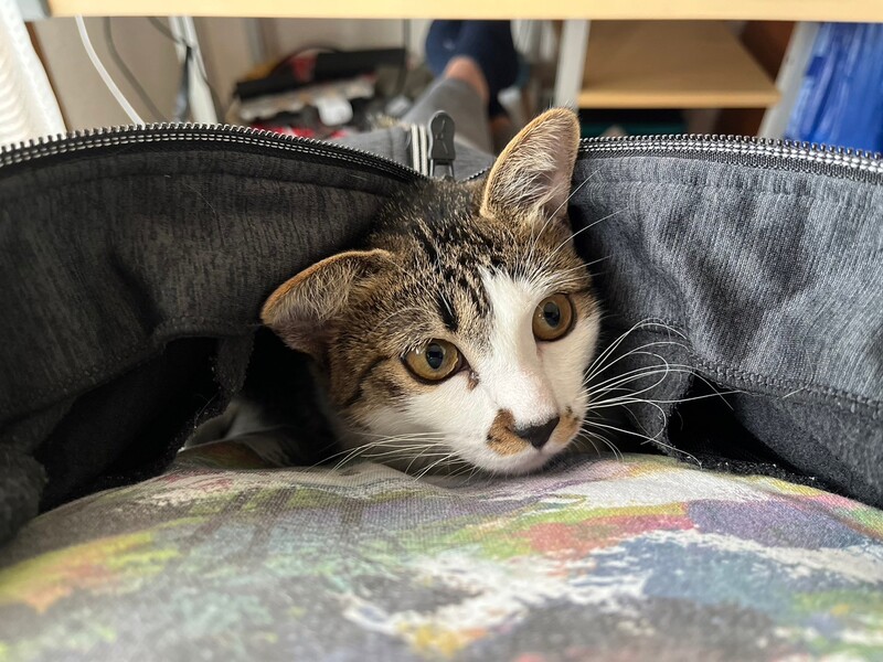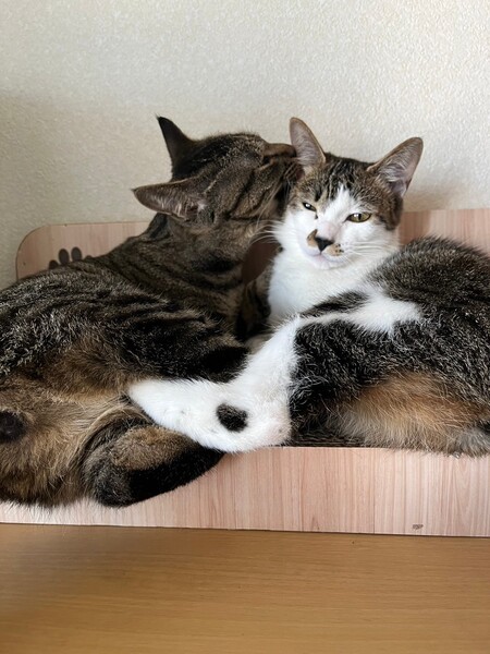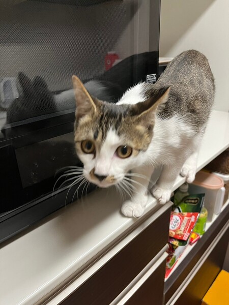 | 特徴(性格など) | 2023.9.7生まれ(推定) 毛色:キジ白 キジ白、かぎ尻尾の元気いっぱい、可愛いくて、賢い女の子です! 屋根から救出されたので仮名は「屋根子」。。。 譲渡会では、いつも隠れようとしますが、家では猫たちと遊びまくりです♪ 抱っこも膝の上も大好きです♡ |