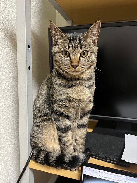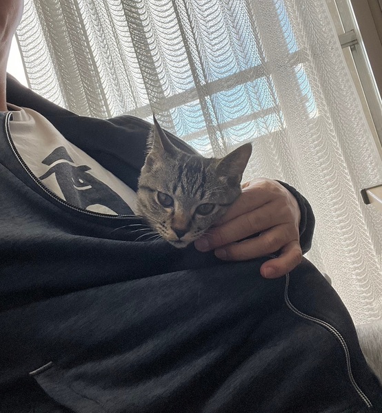 | 特徴(性格など) | 2023.9.20生まれ(推定) 毛色:キジトラ よく鳴き、よく食べる、元気いっぱい、キジトラの男の子です。 人が大好き!ずーと膝の上にいてくれますよ! 預かりボラ宅の、他の猫達みんなに体当たりしニャンプロをしにいきます♪ |