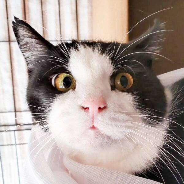 | 特徴(性格など) | おめめもお顔も真ん丸な女の子、まるこです。 人見知りのためか、とても静かな子です。 ケージフリーですが、人がいるときはちぐらにいるのが好きなようです。覗き込むとまん丸おめめで見つめてきます。 人がいなくなると窓の外を眺めて過ごしているようです。 唸ったり威嚇したりはないので、ゆっくりアプローチでその内撫でさせてくれるようにならないかな?と期待しています。 猫エイズ(-) 白血病 (-) |