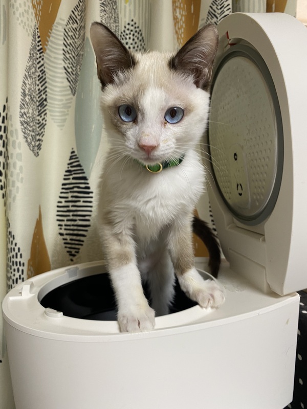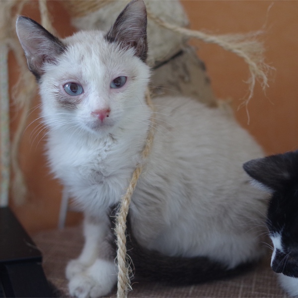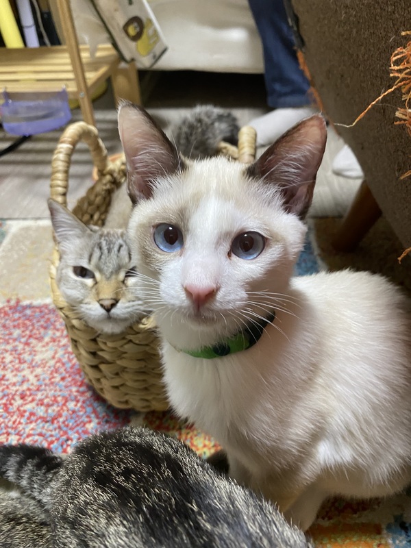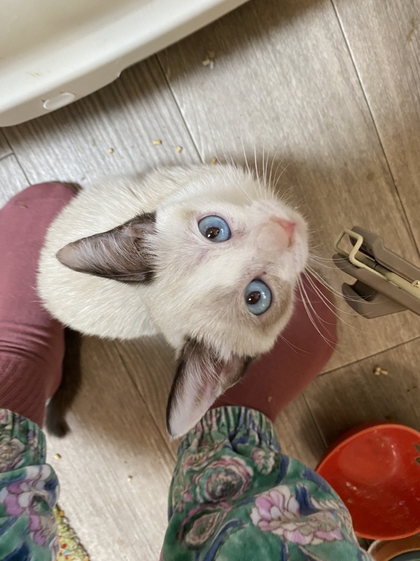 | 特徴(性格など) | シャム系男子 まつやまちはる 来てすぐはかなり警戒心強く、人間は避けていましたが、去勢が終わってからなぜかとても甘えっ子になりました。 足の間をスリスリするのでうっかり踏んでしまいそうになります笑 風邪の後遺症で声が出ず、ハスキーボイスで撫でて、パウチちょうだい、ちゅーる食べたいと訴えてきます。 まさひこと仲良しなので2人で譲渡希望。 |