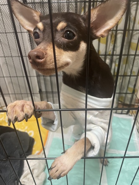 | 特徴(性格など) | まだ少し怖がる時もありますが、 元気いっぱいの若い男の子です。 今は留守番トレーニングとトイレトレーニング中です。 サークルに入ると一応シートでしてくれています。 少し肌荒れがあるので 後日アレルギー検査の予定です。 |