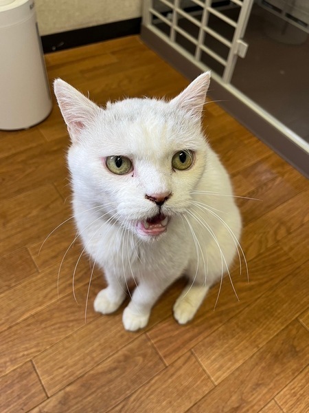 | 特徴(性格など) | 2016.1.1生まれ(推定) 毛色:白 ユーモアあふれるフォルムと表情♡ 推定8歳。 まだまだ元気いっぱい、血気盛んな みたらしおじさん♪ 良く鳴き、良く食べ、隙あらば別のお部屋に入ろうと、毎日企んでいます笑 ナデナデも大好きで人間には慣れていますが、みたらしスイッチが入ると、 突然ガブガブマンに変身!! 猫との暮らしに慣れている方や、小さなお子様や先住猫さんのいないお家を希望します。 |