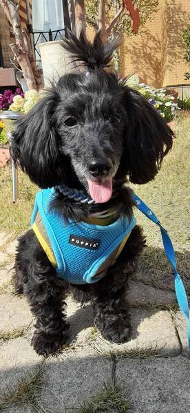 | 特徴(性格など) | 【はじめに】 ◉預かりブログ・HP・譲渡条件を必ず熟読の上、アグリドッグレスキューの専用フォームからご応募お願いいたします。 アグリドッグレスキューHP https://aguri.nomaki.jp/ 預かりブログ『四つ葉のクローバーみつけよう』 https://ameblo.jp/aya-20200501/ 譲渡条件 http://aguri.nomaki.jp/z.html ★【アグリドックレスキュー応募アンケートフォーム】★ http://my.formman.com/form/pc/HSiHA19xGo1sxlwu/ 大晴(たいせい)(仮名) ・種類 プードルミックス ・性別 男の子 ・年齢 推定6~8才 ・体重 6.2kg ・ワクチン 済 ・去勢 済 ・フィラリア (ー) ・混合ワクチン 済 ・今後の医療 狂犬病予防接種 ◆性格 仮名の由来である澄み渡った青空が似合う明朗活発な大晴くんです。うちへ来た当初は全く落ち着きがなく、ガリガリ、被毛も薄く白くおハゲちゃんだらけ、背中全体はストレス環境が原因で赤茶色に変色してました。 しかし、半年経ちやっと、栄養がカラダ全体に行き渡り、体重増加におハゲちゃんもなくなり、背中は真っ黒な被毛が密集して生えてきました。 また、落ち着いた生活を過ごせるようになり、心身ともにリセット完了です。 お留守番も同居犬と一緒ですが、イタズラもせずお利口で待ってくれます。 今は特に困ったことはありません。 お散歩は大好きでガンガン歩きますので一緒にガンガン歩いて楽しんで下さるご家族さまだといいですね! 日々の様子をブログに綴ってますのでご覧ください。 |