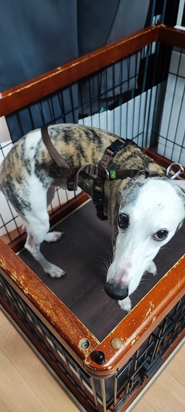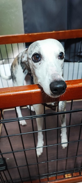 | 特徴(性格など) | かなりの寂しがりでケージに入れるとクゥーンとずっと鳴きます。 留守の間フリーにするとイタズラ(部屋の物を落とす、ゴミ箱をあさる)をします。 他のワンちゃんへの攻撃が少しあるので多頭飼いではなく、1頭飼いでお願いします。 子供に対して唸ったり吠えたりしますのでご理解下さい。 散歩は朝夕の30分ずつしています。家の中ではトイレはしません。 おすわり、お手、おかわり、待て出来ます。 ウィペットという犬種をご理解してる方お願いします。 |