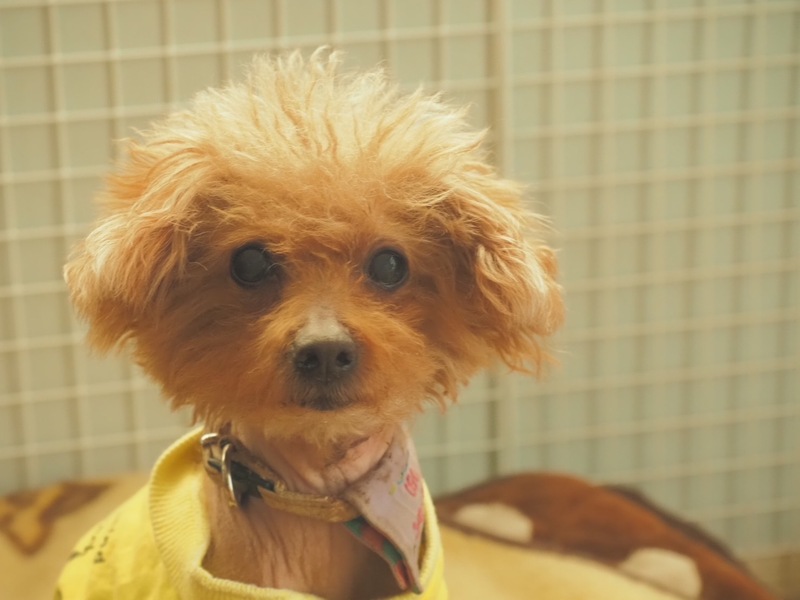 | 特徴(性格など) | 【はじめに】 ◉預かりブログ・HP・譲渡条件を必ず】熟読の上、アグリドッグレスキュの専用フォームからご応募お願いいたします アグリドッグレスキューHP https://aguri.nomaki.jp/ 預かりブログ『オバチャンちに来るかい?』 →https://ameblo.jp/ti952 譲渡条件 http://aguri.nomaki.jp/z.html ★【アグリドックレスキュー応募アンケートフォーム】★ http://my.formman.com/form/pc/HSiHA19xGo1sxlwu/ 璃海(りみ) ・トイプードルの女の子 ・年齢 7歳(2016年6月生) ・体重 3.3 kg ・血液検査(済) ・混合ワクチン接種(済) ・狂犬病予防接種(済) ・マイクロチップ装着(済) ・便検査(済) ・フィラリア(ー) ーーー 今後必要な医療措置 ーーー ・避妊手術(未) ・スケーリング(未) ※脱毛あり ※軽度白内障(目は見えています) ※パテラ・グレード1 □性格 とっても甘えん坊な女の子で、抱っこが大好きです。 同居犬にはあまり興味がなく、とにかく人間が大好きです。 夜は布団に潜ってきて、一緒に寝ています。 抱っこが大好きですが、「今は無理」という事を伝えれば、近くで寝て待てます。 日常の吠えは、ピンポーンの音への反応と家人が帰宅した時に喜んで吠えます。 □食事 現在は、1回40gの低脂肪フードを、朝夕の2回食べています。 新しいフードは最初は口をつけませんが、トッピングなどで誤魔化しながら切り替えていけば、トッピング無しでも食べるようになります。 □ 排泄 オシッコはトイレシートの上に出来ますが、ウンコはシート以外の場所にしてしまいます。 散歩での排泄も出来ます。 □ 散歩 朝の散歩は行くのを嫌がるので、日中に行っています。 散歩へ行くことは大好きで、出かける前は大はしゃぎ。 はしゃいでリードをかじったりするので、必ずリードの点検をお願いします。 散歩時間は璃海ちゃん次第で、長く歩く時もあれば、すぐに帰る時もあります。 安全の為、伸縮リードは使用しないでください。 ダブルリード(Y字リード)・手首または身体からリードが離れない対策をお願いしています。 □トリミング 月1回程度のトリミングが必要です。顔周りの毛は伸びるので、必ずトリミングをお願いします。 □留守番 慣れたら、5時間程度の留守番は可能です。 甘えん坊なので、長時間の留守番がないお家を希望しています。 【健康状態】 □ 脱毛について 現在、顔・背中以外の毛が無く、地肌が見えています。 検査も行いましたが、特に原因となるものも見つかっていません。 璃海ちゃん自体は、とても元気に過ごしています。 冬は肌が乾燥するので、保湿ローションを使っています。 太陽光が直接肌に注がないよう、外に出る時には洋服を着せています。 フワフワなトイプードルではありませんが、性格の良さを重視してくれるご家族が見つかる事を願っています。 □ 軽度白内障について 目が少し白くなりつつありますが、視力はあります。 今後、年齢と共に白内障は進むかもしれませんが、受け止めてもらえると嬉しいです。 □パテラグレード1 現時点では、治療は必要ありません。 |