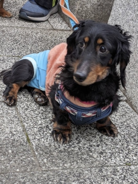 | 特徴(性格など) | ■特徴(仮の名前:ぶんた) ミニチュアダックス♂推定7〜8歳 体重4.9キロ ■性格・暮らし ・とても人懐っこく甘えん坊です。 ・身体のどこを触っても嫌がりません。 ・他犬とは勢い良くご挨拶に行く時もありますが攻撃性はありません。 ・お散歩は上手に歩きます。 ・トイレは練習中です。 ・お留守番が苦手なのでお留守番が少ないご家庭を希望します。 ・後ろ脚の筋肉があまり付いてない為、マット等滑り止め対策をお願いします。 ■今までに行った医療行為 ・フィラリア検査(−) ・血液検査 ・検便 ・混合ワクチン接種 ・マイクロチップ装着 ・去勢手術 ・耳ダニ(-) ・抜歯処置、スケーリング ■今後行う医療行為 なし |
