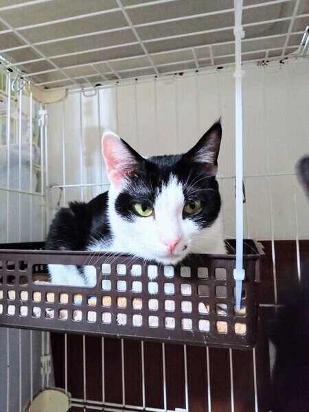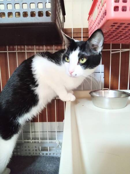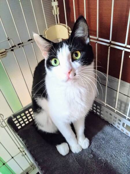 | 特徴(性格など) | ◆だいこくてん子ちゃん 人馴れした控えめな白黒女子 ○埼玉県内で保護されました。 ○推定2歳くらい(2024年3月時点)の白黒ハチワレの女の子です。体重は2.2kg(2024年1月17日時点)です。 ○しっぽは長くてまっすぐです。 ◯口元のほくろがチャームポイント♬ ◯人には馴れていてナデナデもOKです。 ◯ただ自分から寄ってくる感じではないです。 ◯慣れない環境のせいかまだ不安が残っているようです。 ◯控えめなおとなしい性格です。 ★ワクチン接種済み、不妊手術済み。 ★猫エイズ、猫白血病ともに陰性。 ☆単身のかたはご相談ください。 ☆★☆★☆★☆★☆★☆★☆★☆★☆★☆★☆ ~4月21日(日)市が尾にて譲渡会開催!~ ◎場所・・「東急ドエル市ヶ尾プラーザビル2階集会場」 神奈川県横浜市青葉区市ヶ尾町1154-2 田園都市線「市が尾」駅西口より徒歩約2分 ◎日程・・4月21日(日)(雨天決行) ◎時間・・13時00分から16時00分(受付は15時30分まで) (会場に利用可能な駐車場はございません。近隣のコインパーキングをご利用ください。) *12:45よりも前の時間いお待ちいただくことはできません。 *混雑状況により、入場制限をさせていただく場合がございます。 ※参加予定の犬猫は体調により参加できない場合があります。ご了承ください。 ☆★☆★☆★☆★☆★☆★☆★☆★☆★☆★☆ |