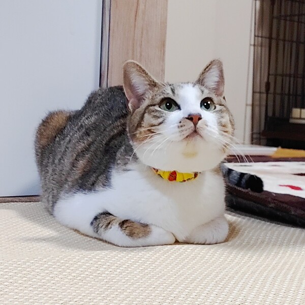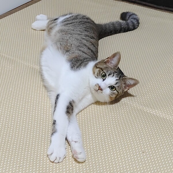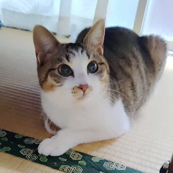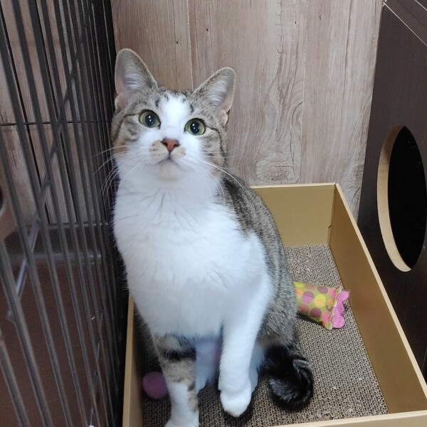 | 特徴(性格など) | お口周りの模様が可愛らしい香梅ちゃんです!お外にいた時は餌やりさんのお家に入れて入れてと甘えて仕方なかったそうです。そのため保護してからの室内生活にはすぐに慣れました。他の猫ともあっという間に打ち解け、追いかけっこしたりしています。好奇心旺盛で遊ぶのが大好き。おもちゃをみつけると、ひとりでも楽しそうに遊んでいます。 人馴れはしていますが、部屋の中フリーになると逃げる→おもちゃですぐにくる→遊ぶ→寝る→撫で放題といった状況です。時間とともに警戒心もなくなると思いますが、それまで気長に見守っていただけると嬉しいです。 |