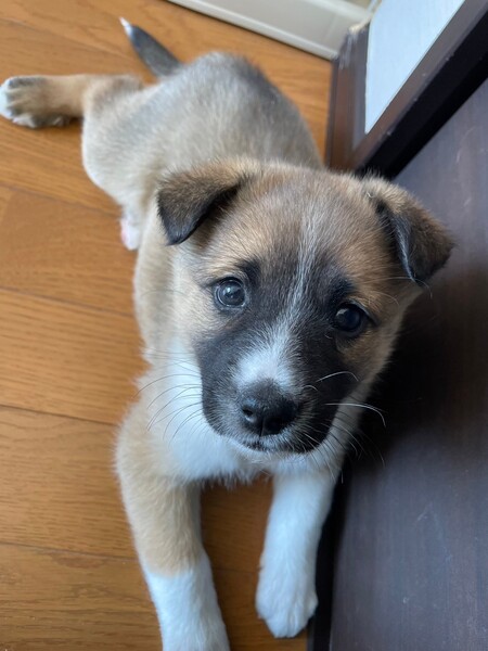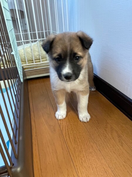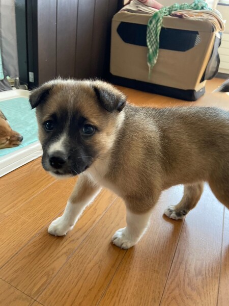 | 特徴(性格など) | ●特徴● 【名前】ただお 【生年月日】2024年2月初旬頃生まれ 【種類】MIX 【サイズ】両親は不明ですが将来は中型犬(15kg)以上になると思います。 【毛色】フォーン&ホワイト 【性別】オス 【去勢】未(適齢になり次第,飼い主様で必ずお願いします) 【ワクチン】生後2ヶ月頃予定 【駆虫】済 【健康状態】良好です 【性格】一緒に暮らす姉妹犬達の方がちょっと強くて負けては鳴かされる事もありますが、負けじと立ち向かっています‼︎ 人も抱っこも大好き‼︎ 成犬の先住犬達とも上手に遊んでいます。 ちょっと鈍臭いけど元気いっぱいで優しい顔した可愛い男の子です♡ 【トイレ】まだ失敗する事もありますがかなりの確率で成功しています。 寝床ではほとんどしません。 フリーの時もケージのトイレに戻るか、部屋に敷いてあるシートで出来ています。 【ケージ】夜鳴きもせず、朝まで眠っています。 お留守番は5、6時間はしています。 |