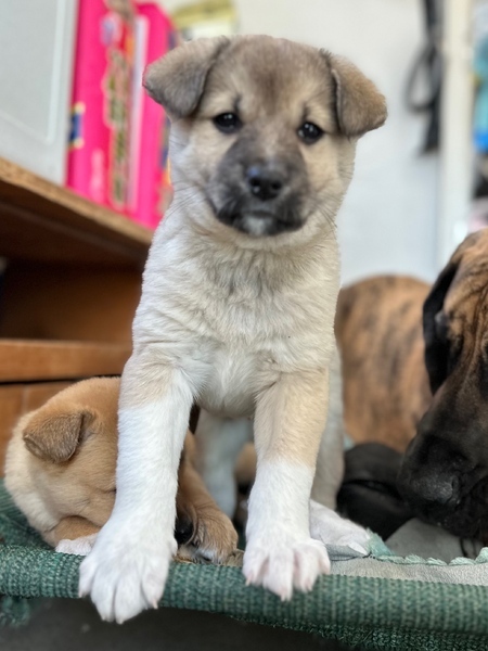 | 特徴(性格など) | ●特徴● 【名前】ウシ 【生年月日】2024年2月初旬頃生まれ 【種類】MIX 【サイズ】両親は不明ですが将来は中型犬(15kg)以上になると思います。 【毛色】フォーン&ホワイト 【性別】オス 【去勢】未(適齢になり次第,飼い主様で必ずお願いします) 【ワクチン】1回済 【駆虫】済 【健康状態】良好です 【性格】おっとりしたマイペースな男の子です。 撫でられるのが大好きでずっと膝の上でまったりしていて動きません。 人が大好きですぐに寄ってきて後をついてきます。 何にでも興味津々で齧ったり追いかけたりして社会勉強中です。 子供や大型犬と一緒に生活しています。 【トイレ】4畳ほどのドックルームではきちんとトイレシートにすることができます。 広いスペースに出ると初めは失敗してしまいますが、トイレの覚えはいいのですぐにトイレシートにします。 【ケージ】お留守番はドッグルーム、就寝時はケージで過ごしています。 トイレシートで遊ぶこともなく大人しくお留守番できています。 |