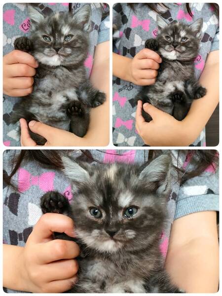 | 特徴(性格など) | 容姿はブリティッシュショートヘアですが柄が珍しいです。 性格は勝気でわがまま姫に育ってます。 |
