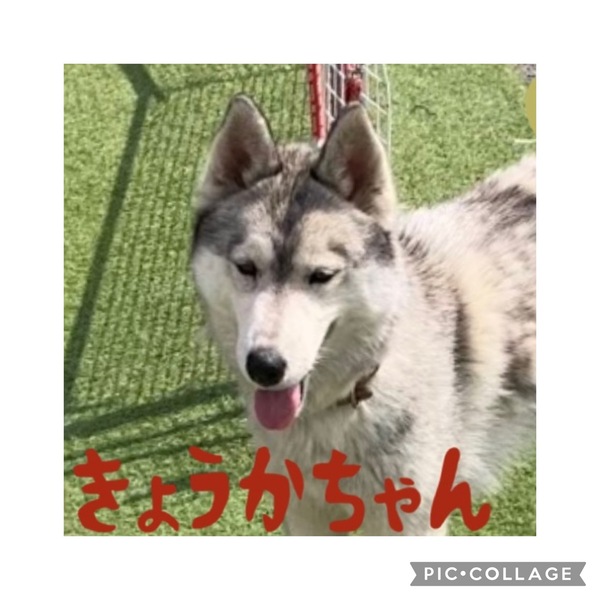 | 特徴(性格など) | きょうかちゃん シベリアンハスキー 体重18.6キロ 怖がりだったのは、初めだけで、すぐに慣れ、若い為元気いっぱいです。 遊ぶの大好き、走るの大好き! 尿が近いと言う理由で、受け入れた為、薬を服用しながら観察中になります。 完全室内飼いでの募集に、なります。 |