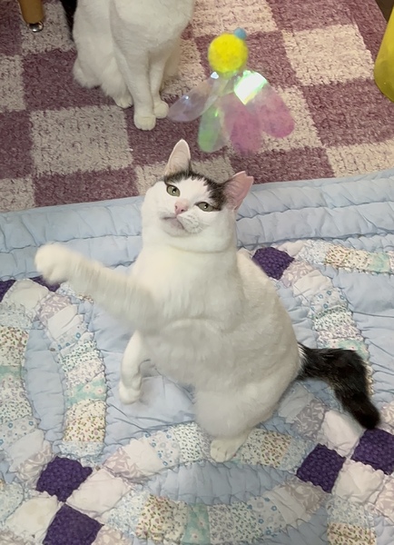 | 特徴(性格など) | 歌舞伎みたいなお顔で可愛い子です? 最近はおもちゃで遊ぶのが大好きみたいでおもちゃを持つと1番に飛んできます。 親子でとっても仲良しでいつも一緒です⭐️ |