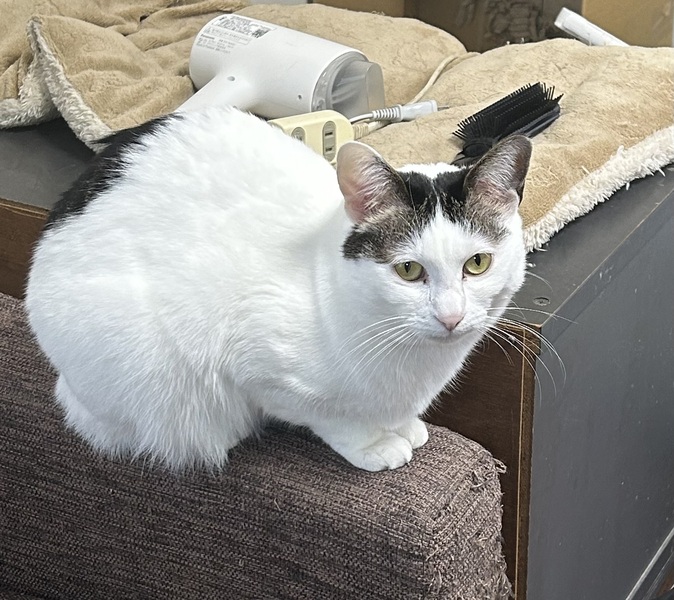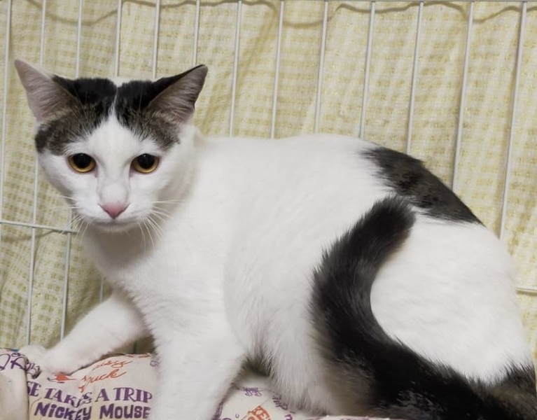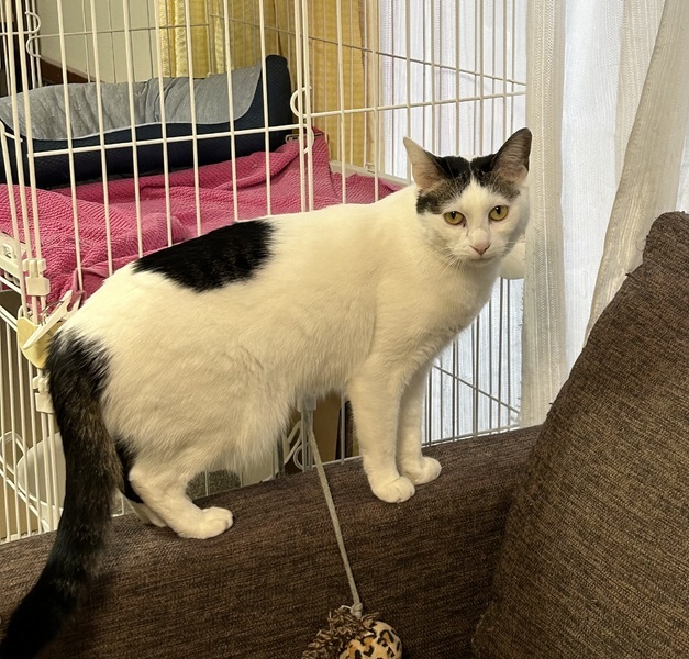 | 特徴(性格など) | 白黒の女の子です。 とってもびびりちゃん。 母猫が大好きな甘えん坊ちゃんです? |