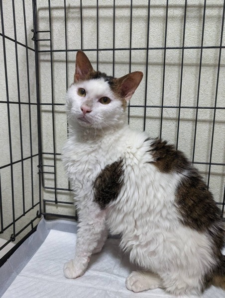 | 特徴(性格など) | 見事なカギしっぽです。ちょっと怖がりさん。 他の猫について回ったりちょっかいかけたりします。手からチュールを食べるようになりました。 |