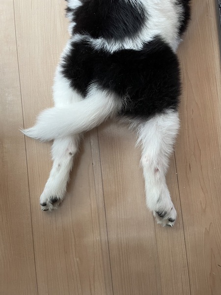 | 特徴(性格など) | 仮名:どん 特徴:もふもふコロコロよちよち、 ぬいぐるみの様な姿 性格:人懐っこい甘えん坊、温厚 今までオハナ代表宅で母犬、兄妹と過ごしてきたので 人馴れ、犬馴れは大丈夫です 食欲旺盛 トイレはシーツの上でできます。 今の所朝まで静かに寝る事が出来ます。 どんの母犬と兄妹の保護にはオハナメンバーだけでなく、 他保護団体の方々、周辺にお住いの方々より 長い間たくさんのご協力をいただきました。 本当に大切な子たちです。 私たちの思いをくみ取って大切に育ててくださるご家族を希望いたします。 獣医さんからも大きくなる事が予想されています。 まだ幼犬で甘えん坊の為嬉しさゆえの飛びつきながらの甘噛みなどで怪我をする事もあります。 散歩中の引く力も強いです。 その為8歳以下NG(※要相談)とさせていただきます。 現在、皮膚病(膿皮症)の治療中です。 毛長の為長期の投薬治療になる事も予想されますので治療にご理解頂ける方。 人や犬、猫に感染はしませんのでご安心ください。 健康状態 良好 体重 6.5kg(5/9現在) 今後の医療措置 ワクチン2回目、3回目 狂犬病ワクチン 去勢手術 マイクロチップ装着 |