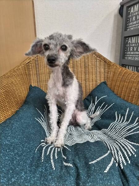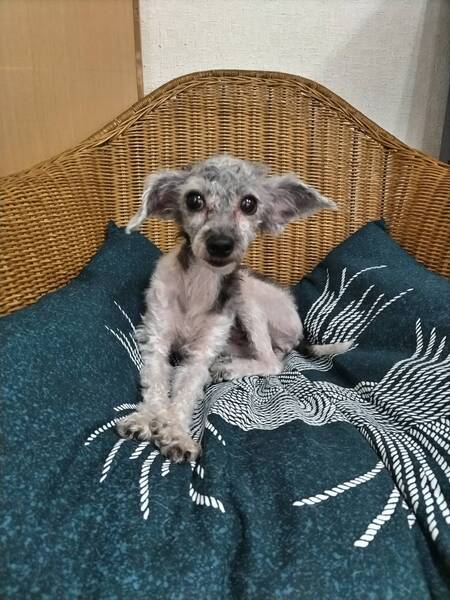 | 特徴(性格など) | トイプードル 色:ホワイト&ミルべー 名前は、みれいちゃん 体重 2kg ワクチン 接種済み レボリューション 済み フィラリア 陰性 パテラ 問題無し 心雑音 問題無し 避妊手術 済み とても優しい性格で二重丸です。 ボサボサだったのでしょう。全身ツルツルに刈り取ってありました。 寒い所に居たせいか肋が見えるほど痩せています。 今は3倍のフードをあげていて毎回完食しています。 お顔はとても可愛いのでふっくらして毛も伸びれば白とグレーの珍しい毛色で可愛くなると思います。 みれいちゃんの余生を温かいお家で過ごさせてあげたいと思います。 宜しくお願いいたします。 |
