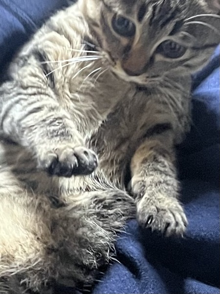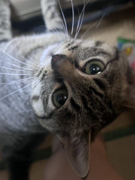 | 特徴(性格など) | キジトラの女の子です。 やんちゃで明るい性格の子です。 掃除機などを怖がってしまうビビりなところもあります。 |