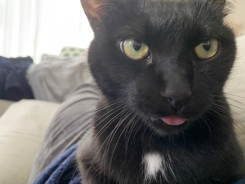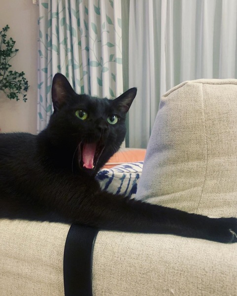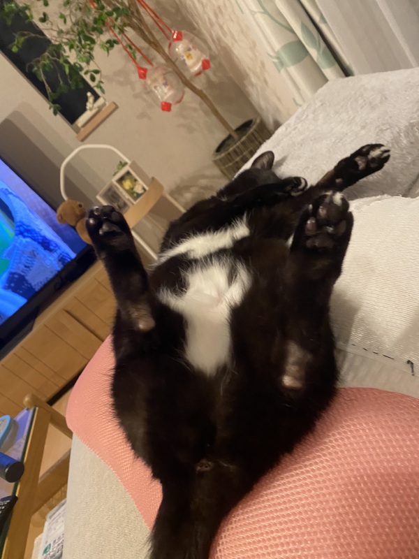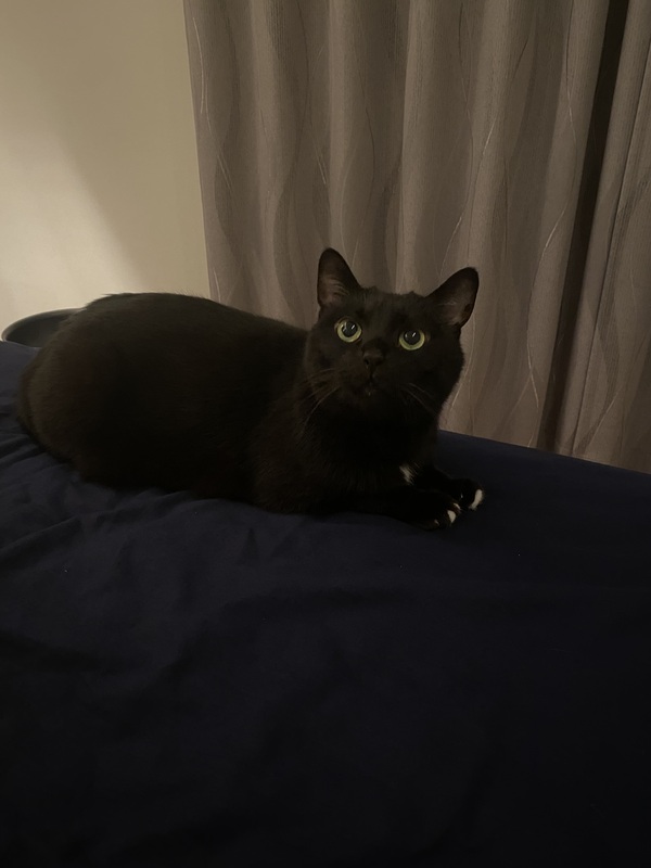 | 特徴(性格など) | 黒猫ですがお腹と首元だけ白くて可愛いです。 性格は大人しく人にすぐ懐きます。 人と一緒に寝る事が大好きな甘えん坊です。 |
