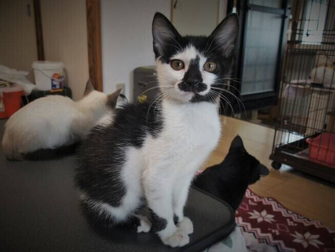 | 特徴(性格など) | ☆彡黒ニンニクのお鼻がかわいい、ごまちゃん☆ミ チュールを最高に愛している子です。 必死に食べる姿 お腹いっぱいで寝る姿 最高に癒されます(^^) 元気になりました。 でも、母親と離れて保護されているので免疫力は少なく新しい環境になった際には病気になる可能性が高いです。よろしくお願い申し上げます。 |