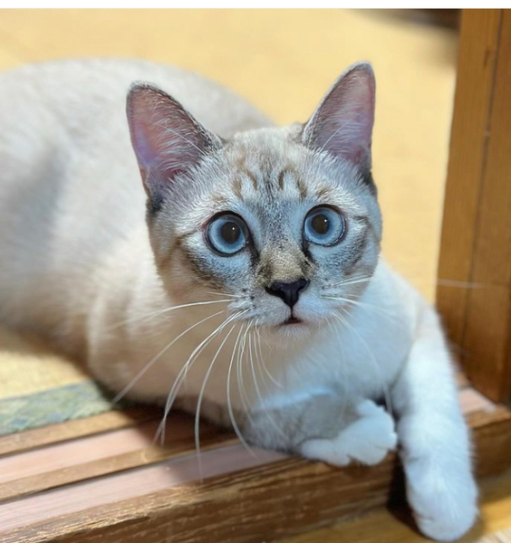 | 特徴(性格など) | ◆ポチッちゃん 目と耳にハンデがある穏やかシャム系子猫 ○沖縄県内にて保護しました。 ○1歳くらい(2024年10月時点)のシャムミックス風の女の子です。 ○尻尾は長くてまっすぐです。 ◯とても活発で好奇心旺盛です。 ◯視力があまりよくなく、物の遠近感がつかみにくい様子がありますが何かがある事は認識できます。 ◯弱視の程度としては明暗の認識は出来ます。 ◯ベッドやローテーブルには手探りで乗ることができますが、時々降りるのに失敗します。 ◯慣れた事や音は平気ですが、それ以外はこわがり、パニックを起こしてしまうこともあります。 ◯トイレはシートを使用しています。 ★ワクチン2回済み、不妊手術済み。 ★猫エイズ、猫白血病ともに陰性。 ★目にハンデがあり、物の距離感がつかみにくいです。 ☆単身のかたはご相談ください。 ★★お見合いを設定することも可能です。まずはお申込みください★★ |