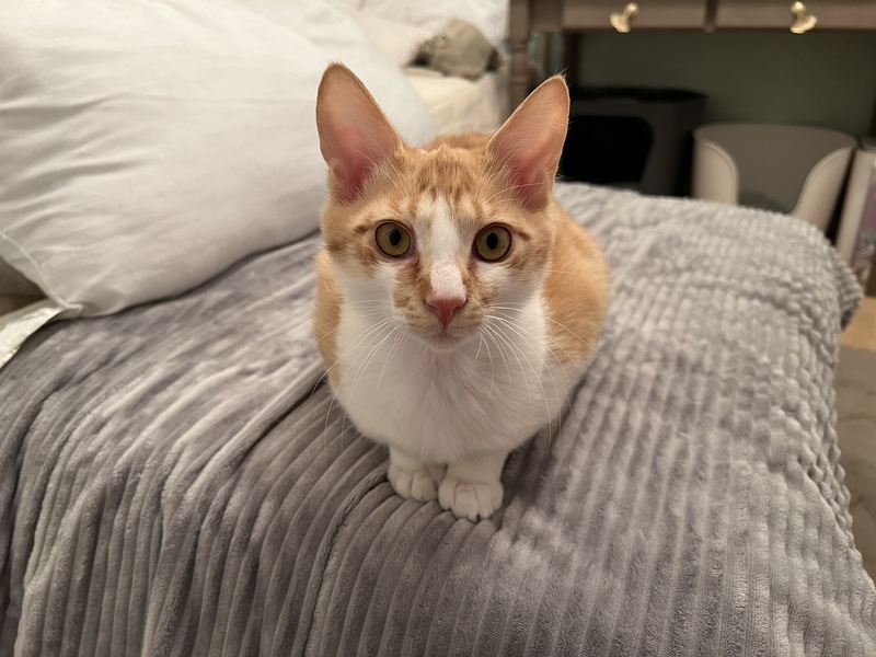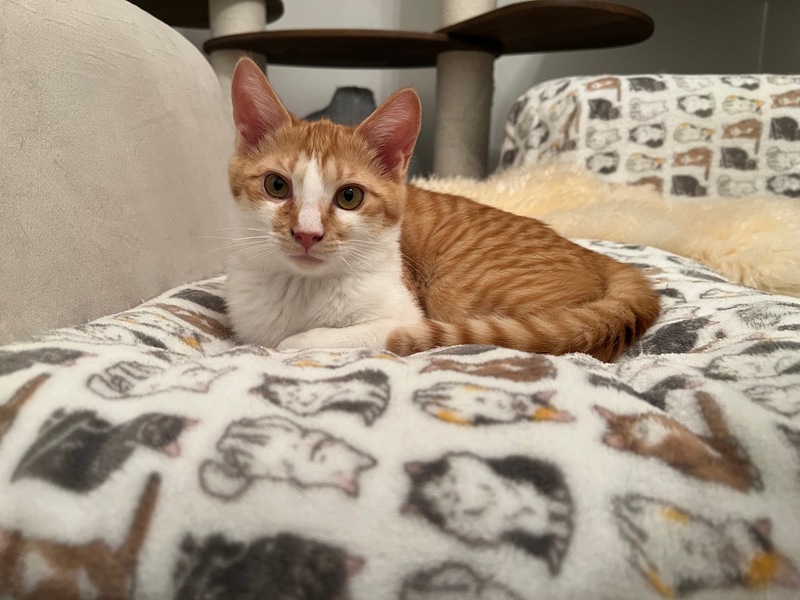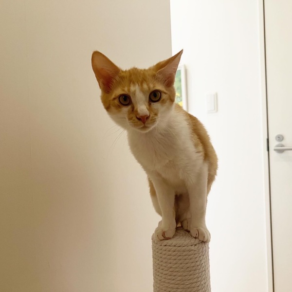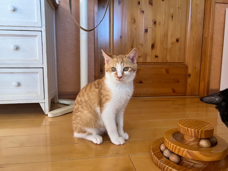 | 特徴(性格など) | 茶白の男の子 最初はビビリくんですが慣れると甘ったれで同じ月齢の子とも成猫とも仲良くしています。 おもちゃで遊ぶのが大好きな元気な男の子です。 |