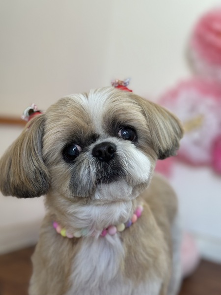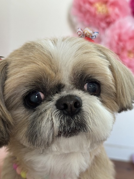 | 特徴(性格など) | シーズーの女の子はなちゃんです! 11歳です。 被毛の色はホワイト&ゴールド 6,5キロです。 愛情たっぷり可愛がられてきたので、性格抜群! 年齢よりも若く見える元気印です。 シーズーの魅力全開です。 人にもわんこにもフレンドリー♪ 新しい環境にも、すぐになじんで ソファーでへそ天^^ 「この子、まえからいた?」と笑われています。 お散歩大好き! トイレは外派です。 ナイスバディですので、ただいま絶賛ダイエット中です が、食いしん坊の熱い視線についついの毎日です。 甘えん坊ですので、お留守番の短いお家を探しています。 あなたのおそばに花ちゃんを♪ お得ポイント ケージに入れたり気に入らないときに、めちゃくちゃおもろい声で文句言います^^爆笑です^^ |