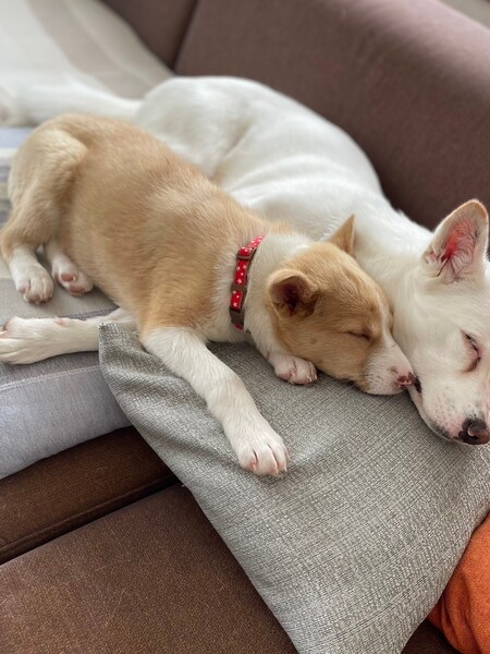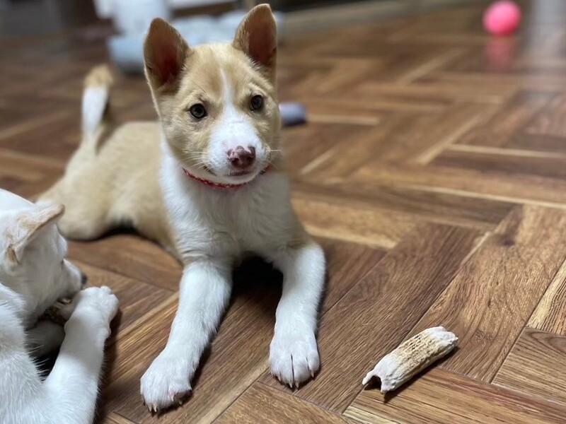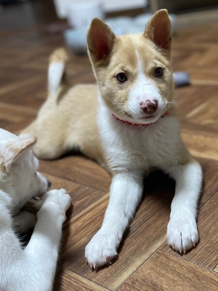 | 特徴(性格など) | 【名前】イルマ 【生年月日】2024年2月初旬頃生まれ 【種類】MIX 【サイズ】両親は不明ですが将来は中型犬(15kg)以上になると思います。 【毛色】レッド&ホワイト 【性別】メス 【避妊】未(適齢になり次第,飼い主様で必ずお願いします) 【ワクチン】2回接種済み 【駆虫】済 【健康状態】良好です 【性格】ちょっぴり臆病ですが、撫でたり抱っこもさせてくれます!犬は大好き、おもちゃも大好き!とてもお利口さんです♡ 【トイレ】トイレは驚くほど完璧? 場所が変わったら失敗もあるかもしれません。 【お留守番&就寝】ゲージ内で過ごしてます。ケージで大人しくしてます!夜鳴きもありません |