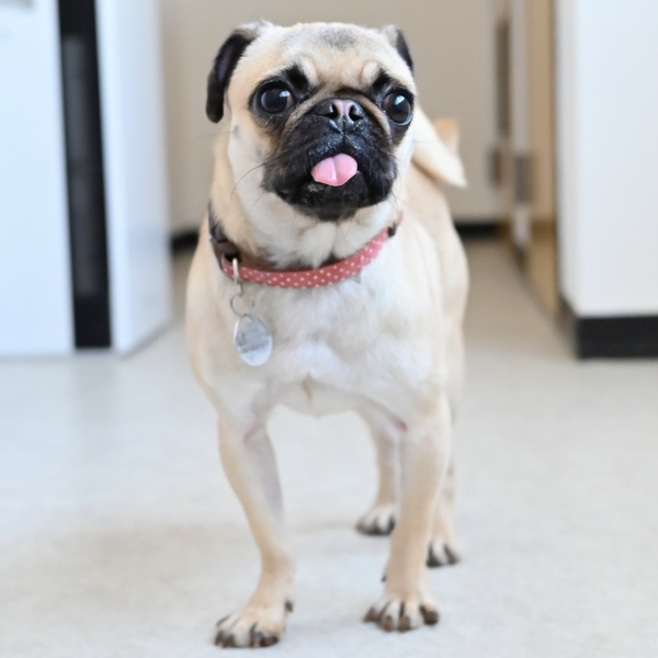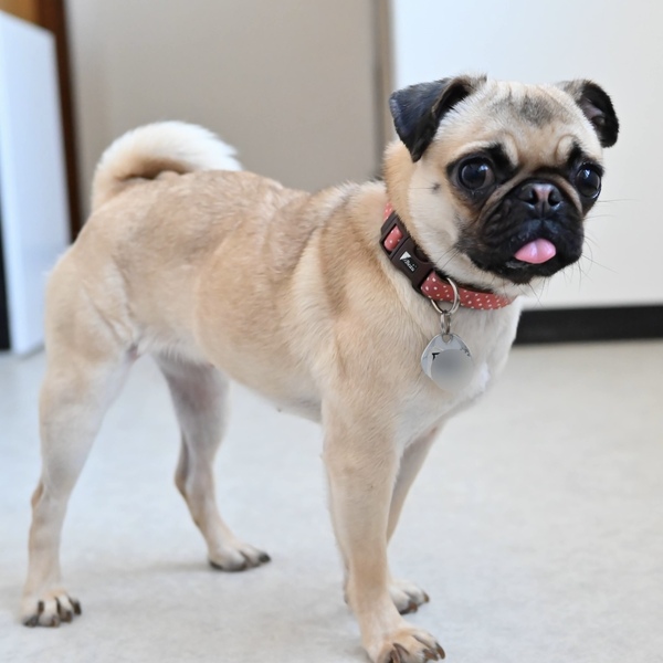 | 特徴(性格など) | 性格・特徴 【性格】 ちょこんと座っている姿がとても可愛いまほろちゃん。側に来てペロペロしながら甘えられるともうメロメロになってしまいます。 他犬とも上手に過ごせます。 【ご飯】 ドライフード(シュプレモでお願いします)50gを1日2回食べてます。 フードは急な変更でお腹を壊さないよう、シュプレモでお願いします。 【お散歩】 お外に慣れる所から始めています。引き続きトレーニングをお願いします。 迷子札は、首輪に刻印式のIDカラーで装着して頂く事と、ダブルフック型ショルダーリード使用のお約束をお願いします。 【トイレ】 トイレシートの認識はまだありません。引き続きトレーニングをお願いします。 トレーニングのご相談は承りアドバイスさせていただきます。 【お留守番】 サークルでお留守番できます。 (ソフトサークルは禁止とさせていただきます) 健康状態 ※ 医療に関しまして、当会では、里親様にお繋ぎするまでに、検査や手術、治療等のレスキュー団体で出来る最大限の努力の上で譲渡活動を行っております。ご理解頂ける方のみご応募ください。 名前 まほろちゃん 犬種 パグ 年齢 1歳くらい(推定) 性別 女の子 体温 37.8度 体重 4.92kg 口腔 歯石除去 歯肉炎等処置済み 心雑音 異常なし 検便検査 異常なし 血液検査 異常なし フィラリア 陰性 レントゲン 異常なし 避妊手術 済み 心電図 異常なし ノミダニ予防 済み ワクチン 接種済み(2024.4.18) 虫下薬 投薬済み(2024.3.30) 狂犬病予防注射 接種済み 畜犬登録 済み マイクロチップ 挿入済み |