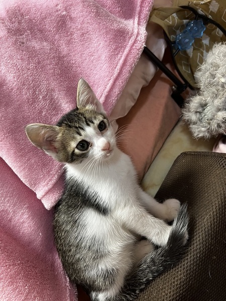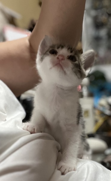 | 特徴(性格など) | イケメンな子猫です。白とトラ柄おデコはMで可愛いです。離乳食もモリモリ食べてます。カリカリも食べる様になりました。甘えんぼ君 | ||
