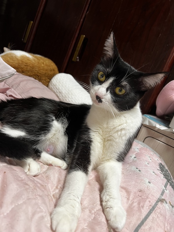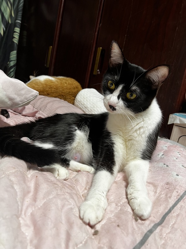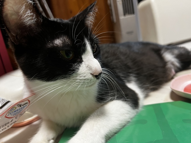 | 特徴(性格など) | ハチワレ美人のママ猫。毛並みツヤツヤ。子猫達が離乳後お渡しになります。人懐こく、食欲旺盛な女の子。ベビーを産みましたが、まだ若い子です。 | ||
