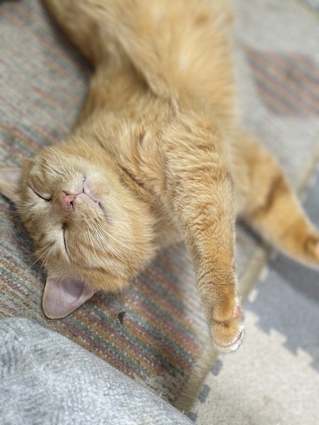 | 特徴(性格など) | ふわふわモコモコの茶トラのオス猫です。 2023年3月生まれ(獣医見立て) ・去勢手術済み(2024年3月実施) ・猫エイズ、猫白血病 ともに陰性 ・ワクチン2回接種済(2024年2月:4種、同年3月:3種) ・保護時に駆虫済み 現在健康面での問題はありません。 猫が大好きな子です。 保護したときから我が家の先住猫に対してシャーした事が1度もなく、最初からフレンドリー全開で頭ごつんの挨拶をしていました。先住猫から激しめにじゃれ付かれても穏やかに返しています。 2頭目をお迎えしたい方にはピッタリだと思います。 野良猫だったためまだ人を怖がることはありますが、攻撃性や敵意はなく、ご飯の催促で人の足に頭をこすりつけてきたり、人の指を甘噛みして舐めたり、自分から人の足元まで来て寝転んだりと、自分から人に歩み寄ってくれています。 完全に人に心を許してベッタリになるにはもう少し時間がかかるかもしれませんが、保護して2ヶ月で上記のような感じなので、焦らず付き合って行けば必ず飼い主大好きな子になってくれると思います。 非常におしゃべりな子で、ご飯催促のときはとてもよく話しかけてくるので楽しいです。 冬は冬毛で驚くくらい顔が大きなムチムチ体型になります。 |