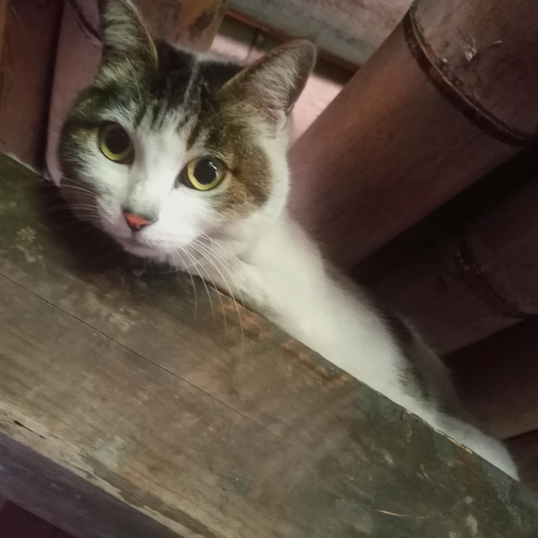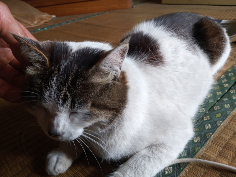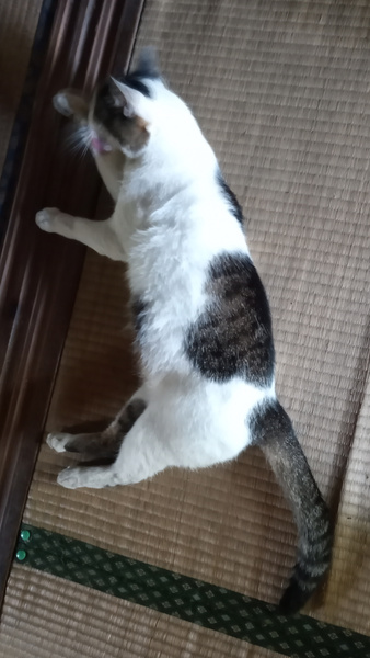 | 特徴(性格など) | 三毛の雑種 3〜4歳、一度 出産した後、避妊手術をしています。 元々 飼い猫だったらしく、たいへん 人懐こいです。 夏場以外は、人の身体に乗って 寝る癖が有ります;。 外飼いで トイレは外でしていましたが、今は 屋内で 猫砂を 使うよう 躾けています。 餌は 市販のキャットフードを食べています。 |