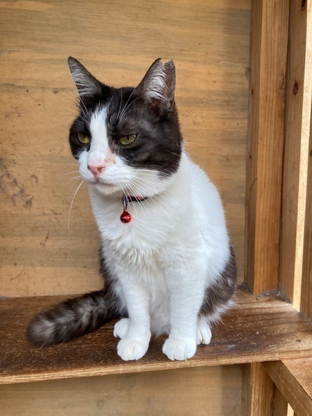 | 特徴(性格など) | 尾長で人懐っこい優しい性格です 保護してから小屋で生活をしていまして 活発で恐怖心がないため、隙あれば外へ飛び出していきます かまってちゃんなのですが、全く鳴きません チュールを差し出しても口にしません 薬を飲みたがらないのが原因で、猫風邪が治らずクシャミが出ます また左目には目やにが出やすいです トイレ躾OK ノミダニと寄生虫駆除済 |