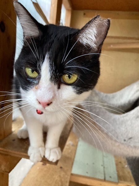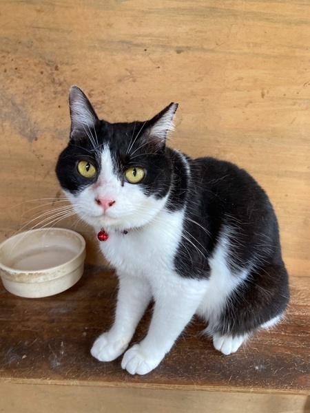 | 特徴(性格など) | 尾っぽが短い、きれいな八割れ白黒ちゃんです おっとりとした大人しめで、人懐っこい女の子です 保護してから小屋で生活をしていまして 臆病もののため、小屋から出るだけでも興奮します かまってちゃんなのですが、全く鳴きません 食事もゆっくりと味わいながら餌を食べるため、 他の猫ちゃんから横取りされますが、怒ったりしない優しすぎる子です トイレ躾OK ノミダニと寄生虫駆除済 |