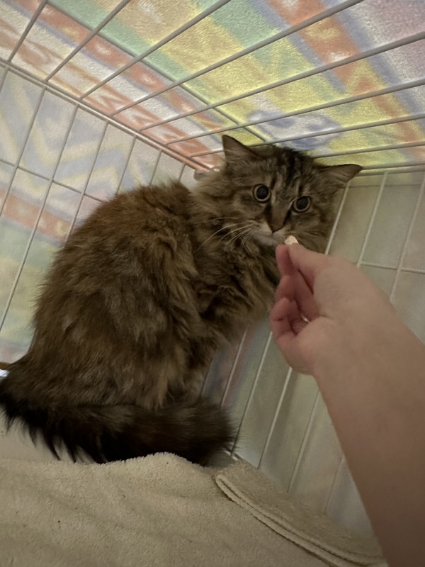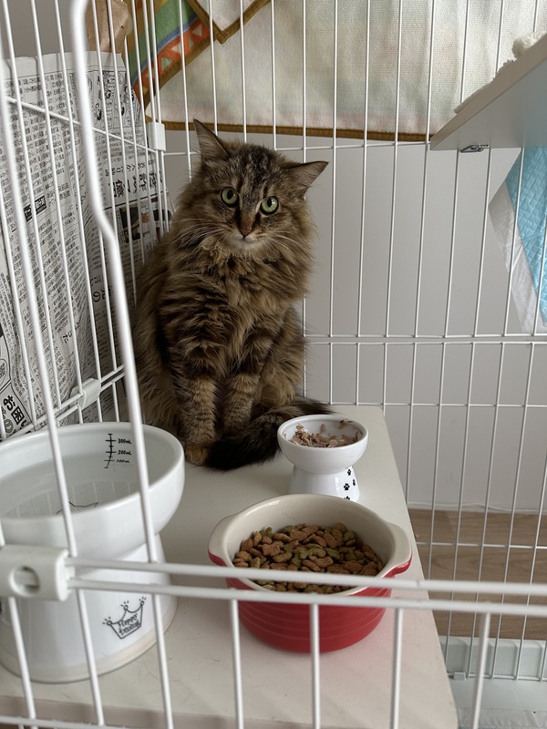 | 特徴(性格など) | 捕獲器に入ってしまい 家猫で幸せになってほしい為保護しました。 当時妊娠しておりすぐ避妊手術になりました。 現在人馴れ中でシャーシャー言いますが手からおやつ食べるしチュールがついた手も舐めます! 触ることもできますが怒ってます! |