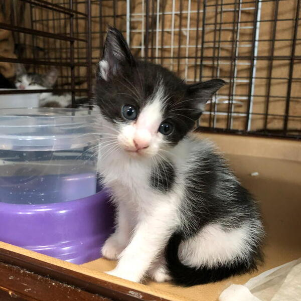 | 特徴(性格など) | 黒白♀:母猫「もち」の子(5兄妹)です。 ●5/9にノミダニ駆虫実施しました。 ●5月下旬に予防接種実施予定です。 |