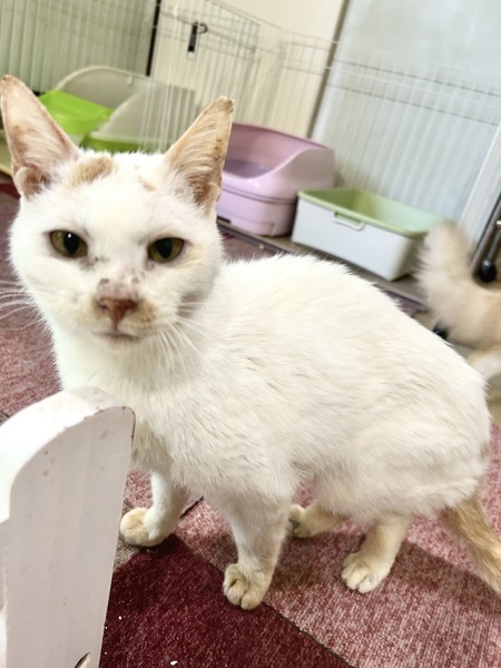| 特徴(性格など) | 雑種のゆきちゃん メス、7歳くらい とても大人しいです キョトンとした顔が可愛いです はじめは怖がってしまうと思いますが、馴れると人の方に寄ってきてニャーニャー言いながら甘えてきます 膝の上にものります 馴れるまでたくさん甘やかしてあげてください! 撫でられるのは大好きですが抱っこは苦手です ご飯大好きなのですがなかなか太りません笑 他の猫はグイグイ来る子は苦手かもしれません、大人しい子なら大丈夫だと思います |