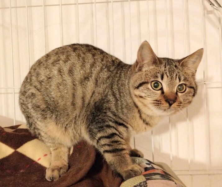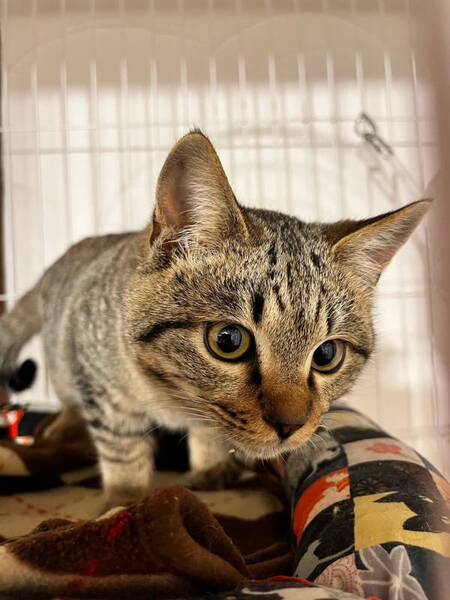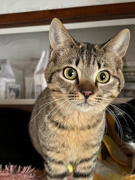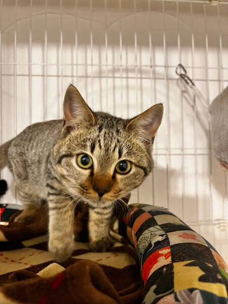 | 特徴(性格など) | まんまるのお目々が可愛いキジトラくん。 仮の名を「まるめ(丸目)」と名付けています。 生後4、5ヶ月ごろの時にやってきたまるめくん。 最初は警戒心強めでしたが、今では人のすることをよく見ており、「怖いけど、近づきたい!」という好奇心が伝わってきます。 まだ子猫のまるめくん、これからどんどん変わっていくことと思います。 そんなまるめくんに寄り添った生活をしてくださるご家族様をお待ちしています。 ◆食事:旺盛、偏食なし ◆性格:怖がり、好奇心旺盛 ♦︎人馴れ:最初はシャーシャー威嚇していましたが、だいぶ慣れて自分から近づいてくるようになりました。ですが人に近づかれると警戒して逃げます。 ◆好きなこと: •猫じゃらしで遊ぶこと •チュールを食べること(大好物です) ◆お留守番:長時間可能 ◆♦抱っこ:まだできません ◆その他: *子どもがいるご家族:高学年以上可 *完全室内飼い、室内フリーでお願いいたします。(慣れるまでケージの設置は必須です) ※チュールやご飯をあげる時、おもちゃで遊ぶ時はよく寄ってきます。 ♡毎週末•祝日に譲渡会(Enn結び会)を行っておりますので、ご応募に迷っておられる方は ぜひ一度実際のまるめくんに会いに来てやってください。 ♡日々の様子はインスタグラム@enn1105にもアップしております^ ^ |