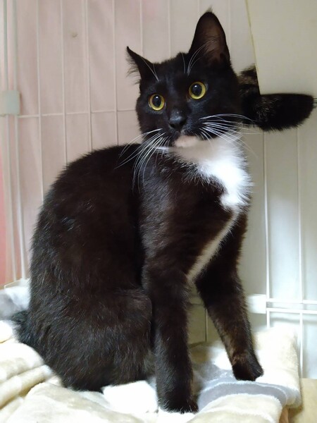 | 特徴(性格など) | 白黒で顎~おなかにかけて白色の毛がつながっています。 両足、両手、ハイソックスをはいているようで白色です。 生後5カ月ころに保護。外での生活で人をまだ怖がることろはありますが、 だんだんと慣れて部屋のなかでは普通に過ごせるようになりました。 抱っこは苦手ですが、背中を触られるのは平気です。 |